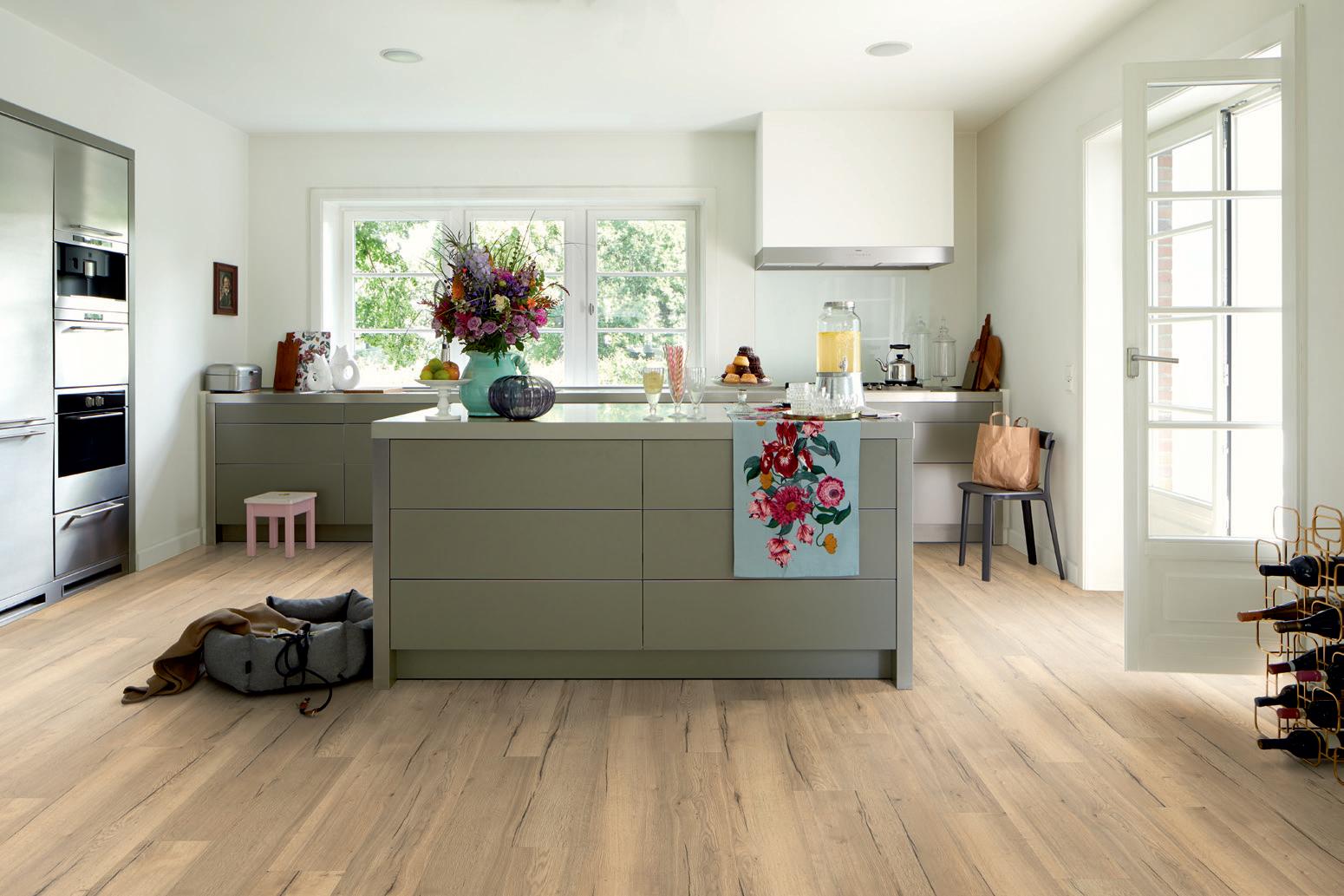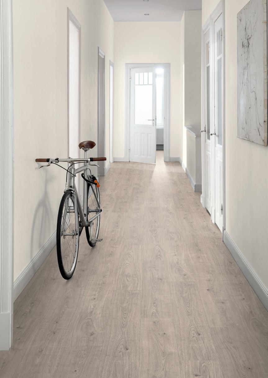 VODOODPOREN POD EGGER HOME DESIGN GREEN TEC Velikost plošče: 1.292/193 mm, plavajoče polaganje, podloga iz plute je integrirana v talno oblogo, 4-stranska fuga. 3239
