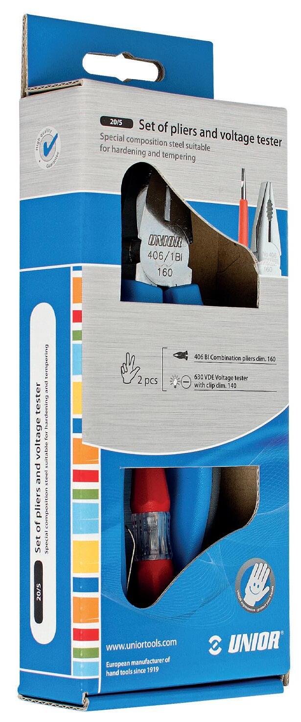 GARNITURA ORODJA UNIOR KOMBINIRANE KLEŠČE 406/1BI 160 mm + PREIZKUŠEVALEC 630VDE 140 mm.