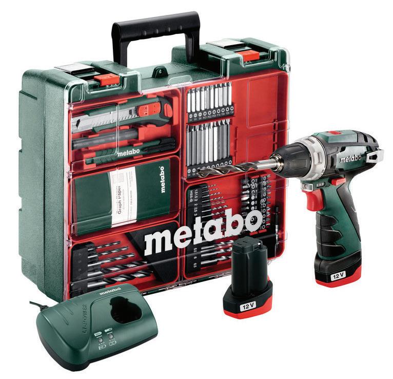 AKUMULATORSKI VRTALNIK METABO POWERMAXX BS SET Polnilnik LC 40, pripenjalne sponke, plastičen kovček, set pribora, hitro zamenljiva vpenjalna glava Quick.