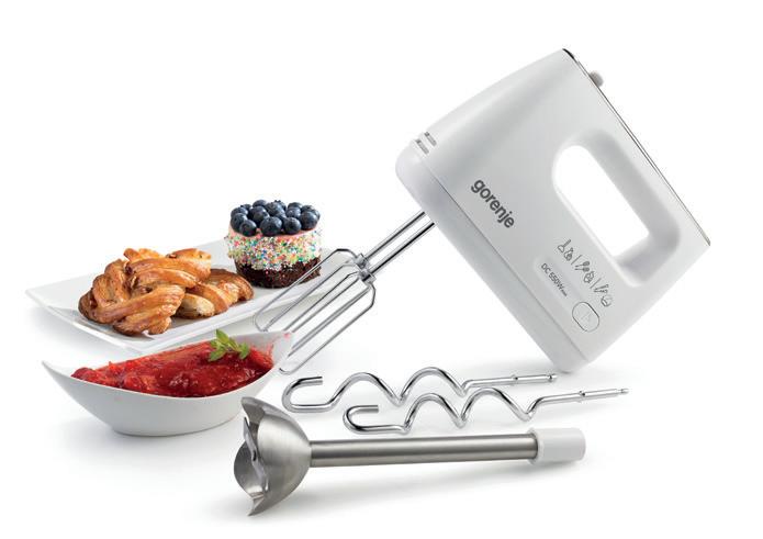 Tiho delovanje • Oprema: nastavni mešalnik, nastavki za gnetenje testa, za mešanje in visoko učinkovita metlica za stepanje • Varnostno stikalo za popolno varnost