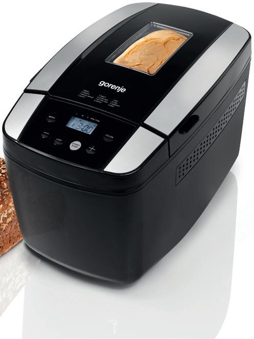 pokončnega shranjevanja 2590 CVRTNIK NA VROČ ZRAK AF1409DB • Pečenje z vročim zrakom, brez olja • Odličen okus z manj kalorijami • Razpon temperature med 80 °C in 200 °C • Posoda prostornine 3,5 l • LED prikazovalnik 10990 APARAT ZA PEKO KRUHA BM1210BK • Možnost izbire 2 velikosti kruha: 900 g/1200 g • 12 programov • Zamik vklopa do 13 ur • Poseben program GLUTEN FREE • Program za pripravo domače marmelade • Funkcija ohranjanja toplote do 60 min 9990