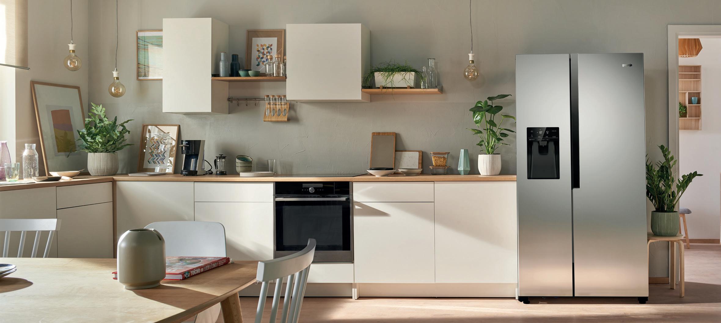 5 KOMBINIRANI HLADILNIK/ZAMRZOVALNIK NRK6202AXL4 • NoFrost Plus • LED prikazovalnik • MultiFlow 360° z ionizatorjem zraka • Convert FreshZone predal • Predal CrispZone z nadziranjem vlage • 38 dB • Barva: inox izgled 64990 KOMBINIRANI HLADILNIK/ ZAMRZOVALNIK NRK620EABXL4 NoFrost Plus • LED prikazovalnik • MultiFlow 360° z ionizatorjem zraka • Convert FreshZone predal • Predal CrispZone z nadziranjem vlage • FastFreeze hitro zamrzovanje • LED osvetlitev • 38 dB • Barva: črna inox 69990 2 0 0 c m NO FROST plus NO FROST plusConvert Fresh Zone Convert Fresh Zone Tiho delovanje Tiho delovanje VELIKO PROSTORA2 m višine 60 cm 2 0 0 c m 60 cm PN … z zanesljivimi aparati Gorenje. 1 7 ,9 3 c m SIDE BY SIDE HLADILNIK/ ZAMRZOVALNIK NRS9182VX1 • Inverterski kompresor • Ledomat z dozirnikom vode (direktni priklop na vodo) • FreshZone predal • LED zaslon • LED osvetlitev • 42 dB • Barva: inox izgled 1.09990 1.199,90 -100€ NO FROST plus LEDOMAT 90 8 cm 5 LET GARANCIJE Ledomat z dozirnikom vode Ledomat z dozirnikom vode lahko upravljate na dotik, ohlajeno vodo, zdrobljen led ali ledene kocke pa si lahko privoščite, ne da bi povezali hladilnik z vodovodno napeljavo. V AMERIŠKEM SLOGU SIDE BY SIDE HLADILNIK/ZAMRZOVALNIK NRS9182VB •NoFrost Plus • Inverterski kompresor • Elektronsko upravljanje • LED prikazovalnik • FreshZone predal • Ledomat (kocke in zdrobljen led) z dozirnikom vode • Rezervoar za vodo • Posoda za zelenjavo • Hlajenje MultiFlow • Hitro ohlajevanje SuperCool • FastFreeze hitro zamrzovanje • LED osvetlitev na stropu • 42 dB • Zvočni alarm • Barva: črni inox izgled 1.19990 PN NO FROST plus LEDOMAT 1 7 ,9 3 c m 90,8 cm