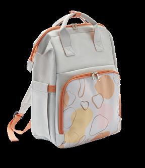 na zadrgo, z notranjim termo žepom s predelki za 3 steklenice, z 1 notranjim in 2 stranskima žepoma, z nastavljivimi naramnicami, 2 držaloma in paščki za pripenjanje na voziček