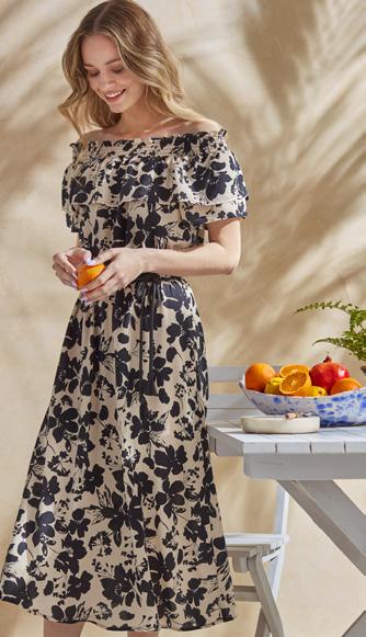 s spuščenimi rameni, z vrvico, ki poudari pas in potiskom, velikosti: 36–44