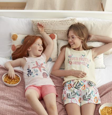 za deklice, na voljo: top s potiskom in enobarvne kratke hlače, velikosti: 92–128 cm – 4 EUR ali top in kratke hlače, s potiskom, velikosti: 134–176 cm – 5 EUR