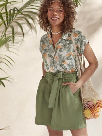 s široko elastiko v pasu in naborkom na spodnjem delu, s potiskom, velikosti: S–XXL