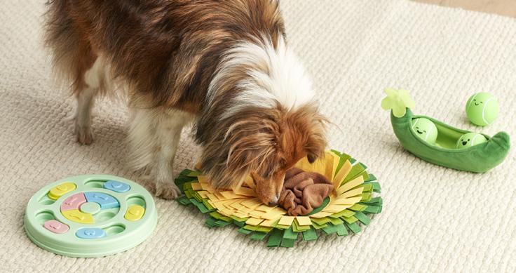 Igrača za psa ali mačka, za vohanje, za iskanje priboljškov med resicami, s protizdrsnim spodnjim delom