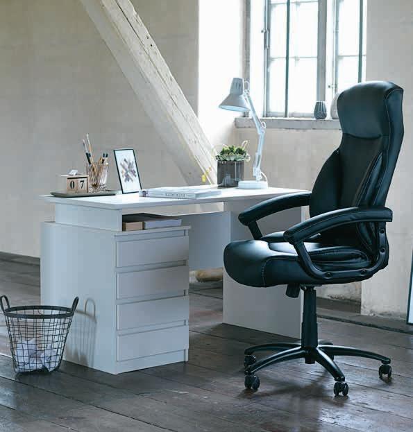 PISARNIŠKI STOL TAMDRUP Umetno usnje. Sedež iz spominske pene, ki sprošča pritisk. Ogrodje iz jekla. Z nastavljivo višino in brezstopenjskim nagibnim mehanizmom. Š80xV119-129xG68 cm 289.-