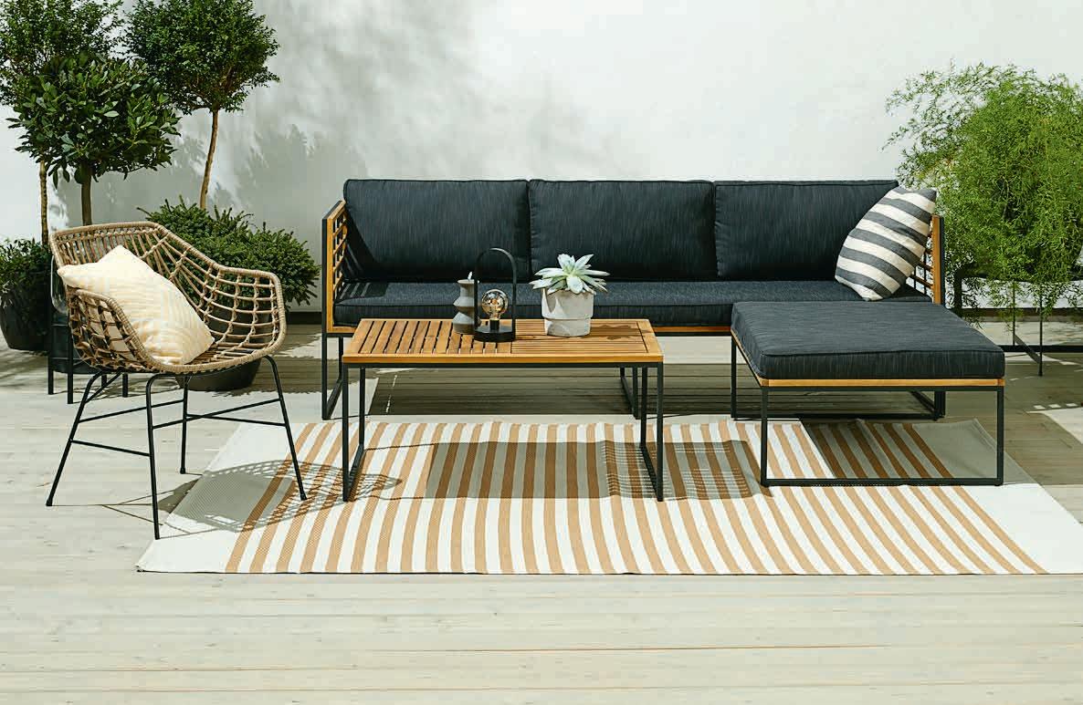 LOUNGE TROSED S PODALJŠKOM UGILT Trosed iz galvaniziranega jekla in oljenega FSC®-trdega lesa. Podaljšek se lahko uporablja na obeh straneh. Z luksuznimi blazinami s trpežno, strukturno tkano prevleko. Š210xV70xD90/160 cm 799.- 600.-