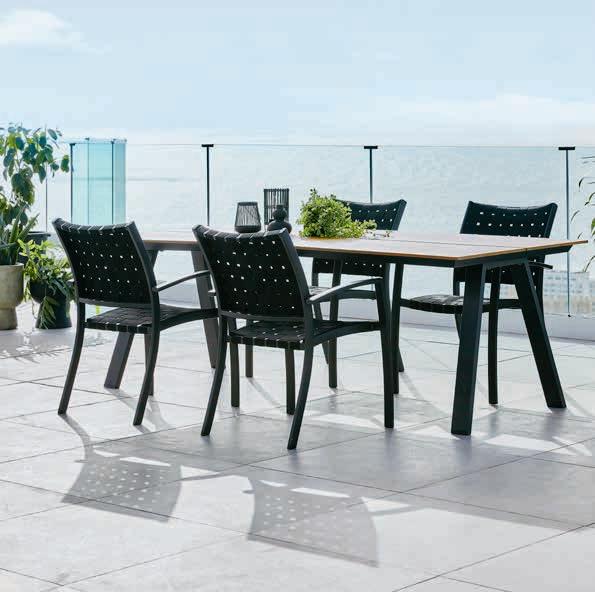 Miza: Aluminij in umetni les. Š100xD220xV74 cm. Stol: Aluminij in polipropilen z UV-zaščito. Nakladljiv. Miza* 499.- 350.- Stol 99.- 75.-