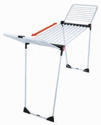 • stabilno visokokakovostno stojalo zadošča za sušenje perila do 2 pralnih strojev, saj nudi 18 m sušilne površine • zložen zavzame zelo malo prostora • gumijasti nastavki za stabilno postavitev • varovalo, ki prepreči nenadno zapiranje stojala • 3 leta garancije