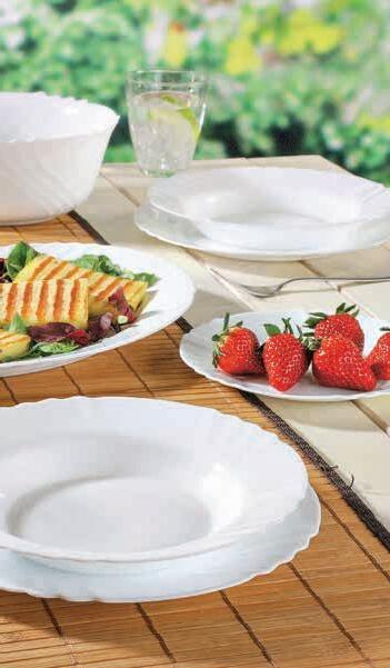 • plitev 25,5 cm, globok 23,5 cm ali desertni 20 cm • opalno steklo