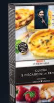 • Quiche ali slovensko "kiš", jed ki izhaja iz Francije • ročna izdelava • pripravljene iz svežih, kakovostnih in pretežno lokalno pridelanih sestavin • že pečeno, pred uživanjem je izdelek potrebno le na hitro dopeči