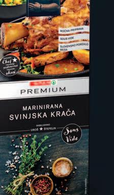 3 * Preverjeno na Biotehniški fakulteti Univerze v Ljubljani. V SODELOVANJU Z GREGORJEM VRAČKOM, CHEFOM Z MICHELINOVO ZVEZDICO • slovenski izdelek • ročna izdelava • krškopoljski prašič slovenskega avtohtonega porekla • brez barvil in ojačevalcev okusa SPAR Premium PAŠTETA IZ KRŠKOPOLJSKEGA PRAŠIČA 130 g ODLIČNA KAKOVOST* UNSKE SESTAVINE, VRHUNSKI SLOVENSKI IZDELKI. SPAR Premium MARINIRANA SVINJSKA REBRA V BBQ OMAKI pakirano, 1 kg ODLIČNA KAKOVOST* • proizvaja Mesarstvo Blatnik • marinirano v odlični BBQ omaki • ročna izdelava • pripravljeno po SOUS VIDE postopku (kuhano 12 ur na 72 oC) • sočno in nežno meso • enostavna priprava v pečici ali na žaru CENEJE 15% s SPAR plus kartico redna cena 18,99 s SPAR plus kartico 1599 SPAR Premium CHEFOV PIŠČANEC IK polnjen z dimljeno panceto, brusnicami in kostanjem, pakirano, cena za 1 kg ODLIČNA KAKOVOST* 999 289 SPAR Premium KRVAVICA postrežno, 1 kg ODLIČNA KAKOVOST* redna cena 11,99 s SPAR plus kartico 899 CENEJE 25% s SPAR plus kartico NOVO NA NAŠI POLICI • s slovensko ajdovo kašo in ješprenjem • s koščki prekajenega mesa NOVO NA NAŠI POLICI • slovensko piščančje meso • ročna izdelava • enostavna peka v pečici v priloženi posodi in foliji