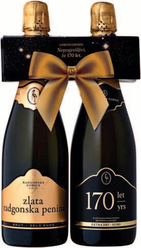 30 ZLATA RADGONSKA PENINA suha, klasična metoda, Radgonske gorice, 0.75 l + 2 kozarca; darilno pakiranje Omejena količina. ZLATA RADGONSKA PENINA 170 LET zelo suho in suho, klasična metoda, Radgonske gorice, 2 x 0.75 l redna cena 29,99 SREBRNA RADGONSKA PENINA polsuho, charmat metoda, Radgonske gorice, 0.75 l + 2 kozarca; darilno pakiranje Omejena količina. 24,99 s SPAR plus kartico 20,99 21,99 30 % CENEJE Peneča vina MINISTER ZA ZDRAVJE OPOZARJA: PREKOMERNO PITJE ALKOHOLA LAHKO ŠKODUJE ZDRAVJU.