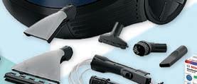 • pribor: komplet za pranje, preklopna šoba, velika šoba za pranje preprog in sesanje tekočin, majhna šoba za pranje oblazinjenega pohištva, majhna šoba, šoba za reže in šoba za oblazinjeno pohištvo
