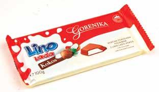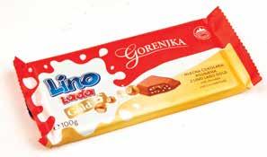 MLEČNA ČOKOLADA GORENJKA • različna polnila • 100 g VAFELJ NUTELLA BISCUITS • 304 g NAPOLITANKE KRAŠ • lešnik • s sladili • 50 g BIO EKSTRA TEMNA ČOKOLADA PLAMIL • 87 % kakava • 80 g BOMBONI FRUIT JELLY • 400 g BOMBONI SMARTIES • tulec • 130 g BOMBONJERA TOFFIFEE • 125 g BOMBONI 505 S ČRTO • Diet • 80 g BOMBONI ŠUMI • jabolko • 400 g ČIPS LORENZ X - CUT • paprika • sir. čebula • soljen • 130 g ARAŠIDI NIC NAC • paprika • 125 g PRESTICE KVIKI • 200 g ŽVEČILNI GUMI MENTOS • Bubble fresh, 30 g • Vitamins, 26 g • Spearmint, 30 g • jagoda, 30 g 2,89 -25% 3,89 3,39 -22% 4,37 1,15 -22% 1,49 3,19 -20% 3,99 0,65 -21% 0,83 2,09 -27% 2,89 1,79 -18% 2,19 1,25 -26% 1,69 3,39 -24% 4,49 1,79 -25% 2,39 1,89 -34% 2,89 1,39 -24% 1,85 0,85 od 0,99 AKCIJA • s čokolado • s čokolado in lešniki • z jagodo in čokolado • z malino in chia semeni • Mondelez • od 250 g do 270 g KREKERJI TUC • kisla smetana in čebula • paprika • sir • Mondelez • 100 g ČOKOL ADA MLEČNA MILKA • Choco & Biscuit • Triolade • jagoda • Noisette • Peanut Caramel • ndelez od g do g Mo • 270 300 KEKSI BELVITA 991, 2,49 -20% 752, 3,45 -20% 870, 1,09 -20% 251, 1,55 % -19 ČOKOL ADA TOBLERONE • mlečna • Mondelez • 100 g