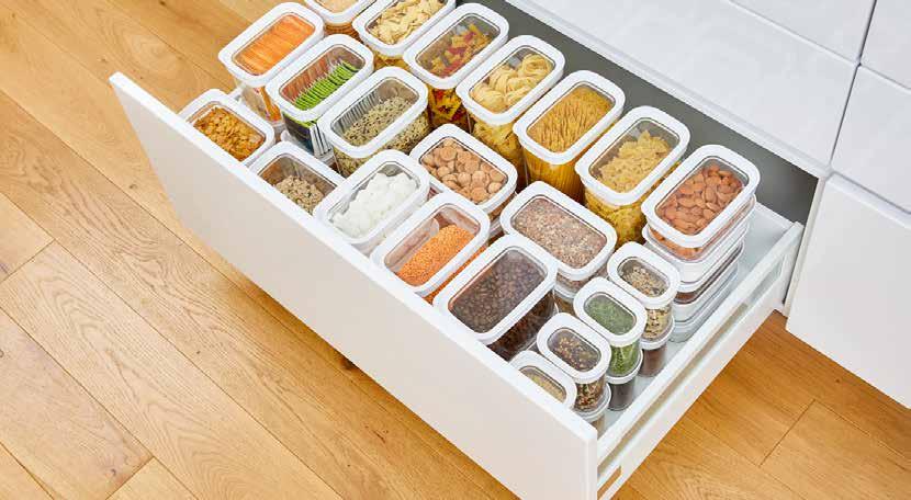 Optimalna rešitev za varno shranjevanje suhih živil v posodah iz kakovostne plastike brez BPA z inovativnim pokrovom in edinstvenim tesnilom za ohranjanje daljše svežine živil. Primerne za pomivanje v pomivalnem stroju. Ponudba velja za Tuš klub člane od 17. 5. do 27. 6. 2023 v Tuš supermarketih.