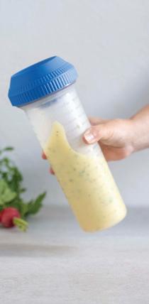 Magic mixer, 750 ml Uporabite ga lahko kot posodo za hitro mešanje in merjenje pri pripravljanju, mešanju, serviranju in shranjevanju marinad ter tekočih ali suhih sestavin brez nereda in napora, ki bi nastala pri rabi večjih skled ali električnih mešalnikov.