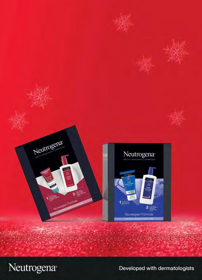 *Velja za koncentrirano kremo za roke. Razvito v sodelovanju z dermatologi JE ZNANOST Takoj navlaži in ščiti 24 ur* Z glicerinom naravnega izvora 30 % POPUST Popust velja za izbrane izdelke blagovne znamke Neutrogena®. Becutan Otroški vlažni robčki 56/1 167 2.39 POPUST 30 % Curaprox 5460 Zobna ščetka • več vrst 3/1 1153 14.79 POPUST 22 % L’Angelica Gel za prhanje & kopel • pomaranča & kakav • jabolko & cimet 500 ml 258 3.69 POPUST 30 % Popust velja za izdelke Libresse. POPUST 20 % Popust velja za vse zobne ščetke Philips Sonicare. POPUST 20 % TVOJA NAJLJUBŠA DARILA DOSTAVIMOna dom! Uživajte v prazničnem vzdušju tudi pod prho s čudovitimi božičnimi vonji L’Angelica!