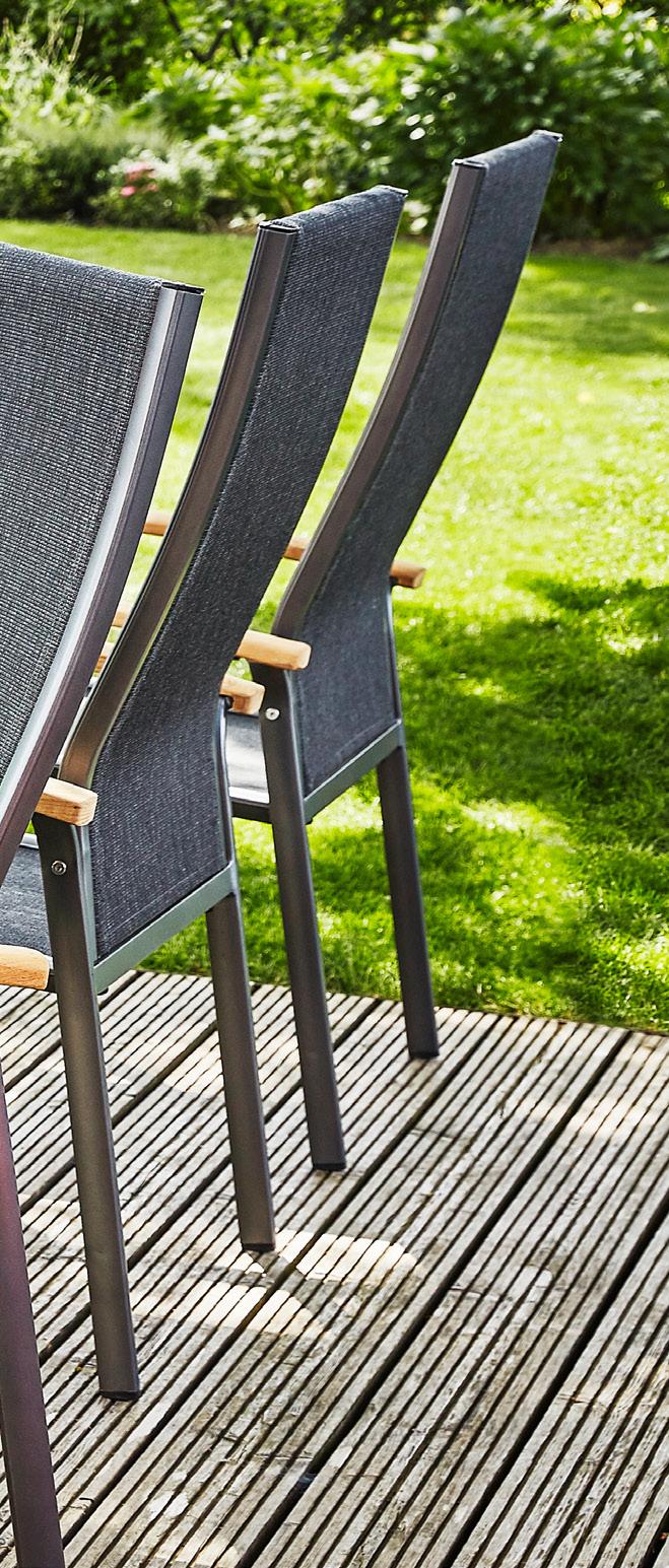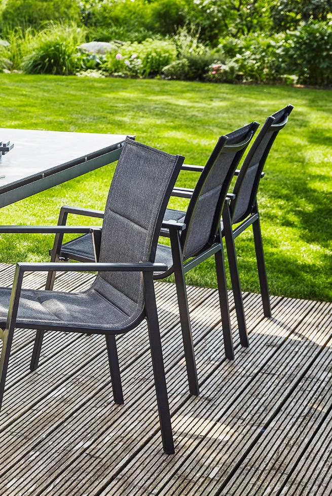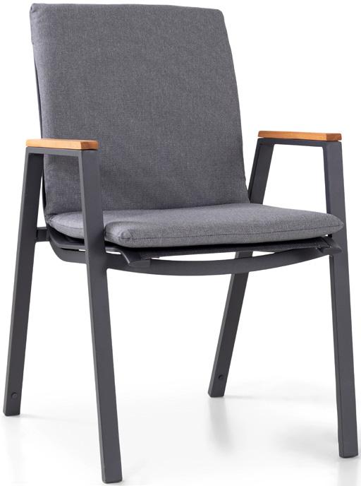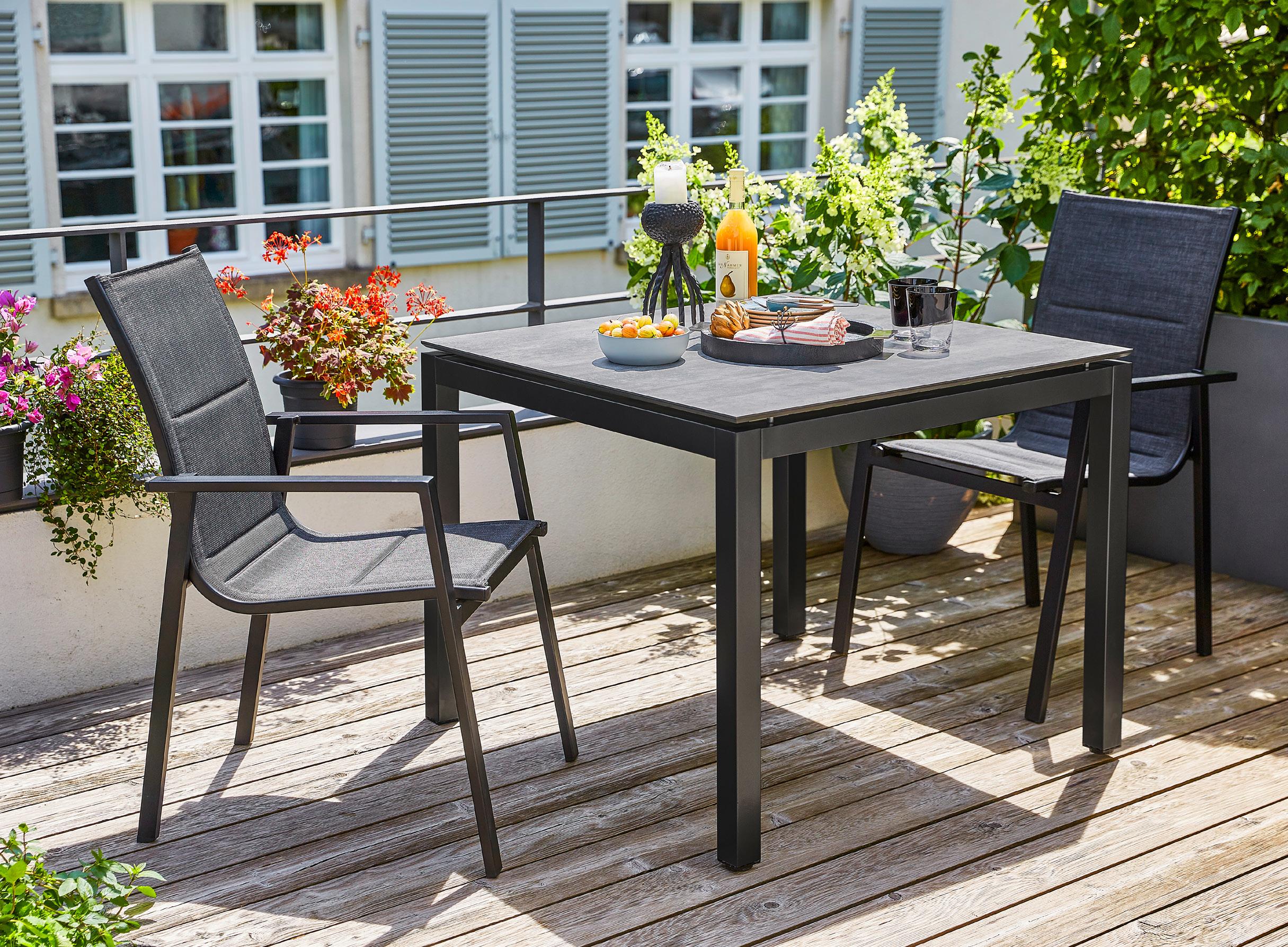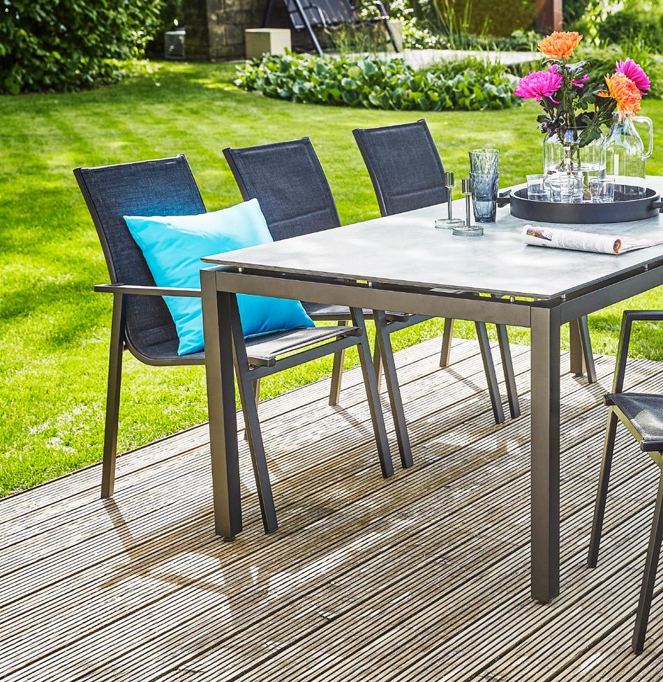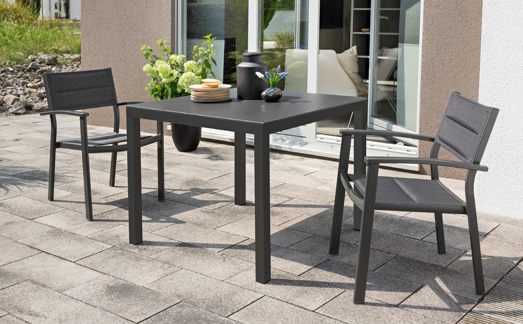 Pohištvo iz serije 'Maja' je mamljivo zaradi prašno barvanega aluminijastega ogrodja antracitne barve ter sodobnega dizajna in preproste elegance. Vključene blazine za sedež in naslon so barvno usklajene in zagotavljajo optimalno udobje sedenja.