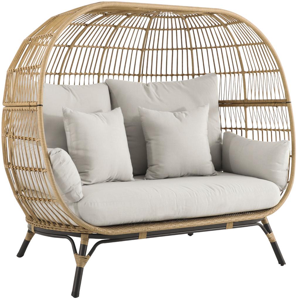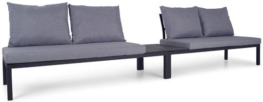sestavljena iz 2 dvosedov d 180 x š 79 x v 79,5 cm, stabilno jekleno ogrodje, več možnosti postavitve, s praktičnimi odlagalnimi površinami na obeh straneh, vključno z blazinami