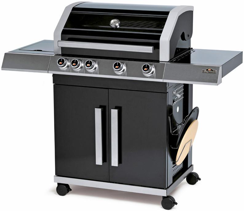 14 kW, 4 gorilniki iz nerjavnega jekla, 3,5 kW stranski infrardeči gorilnik, površina za peko d 70 x š 45 cm, piezo vžig, emajlirana litoželezna KMS rešetka, pokrov z dvojno steno, steklom in termometrom, LED regulatorji, kamen za pico, d 138 x š 60 x v 117 cm 25604487 639,-
