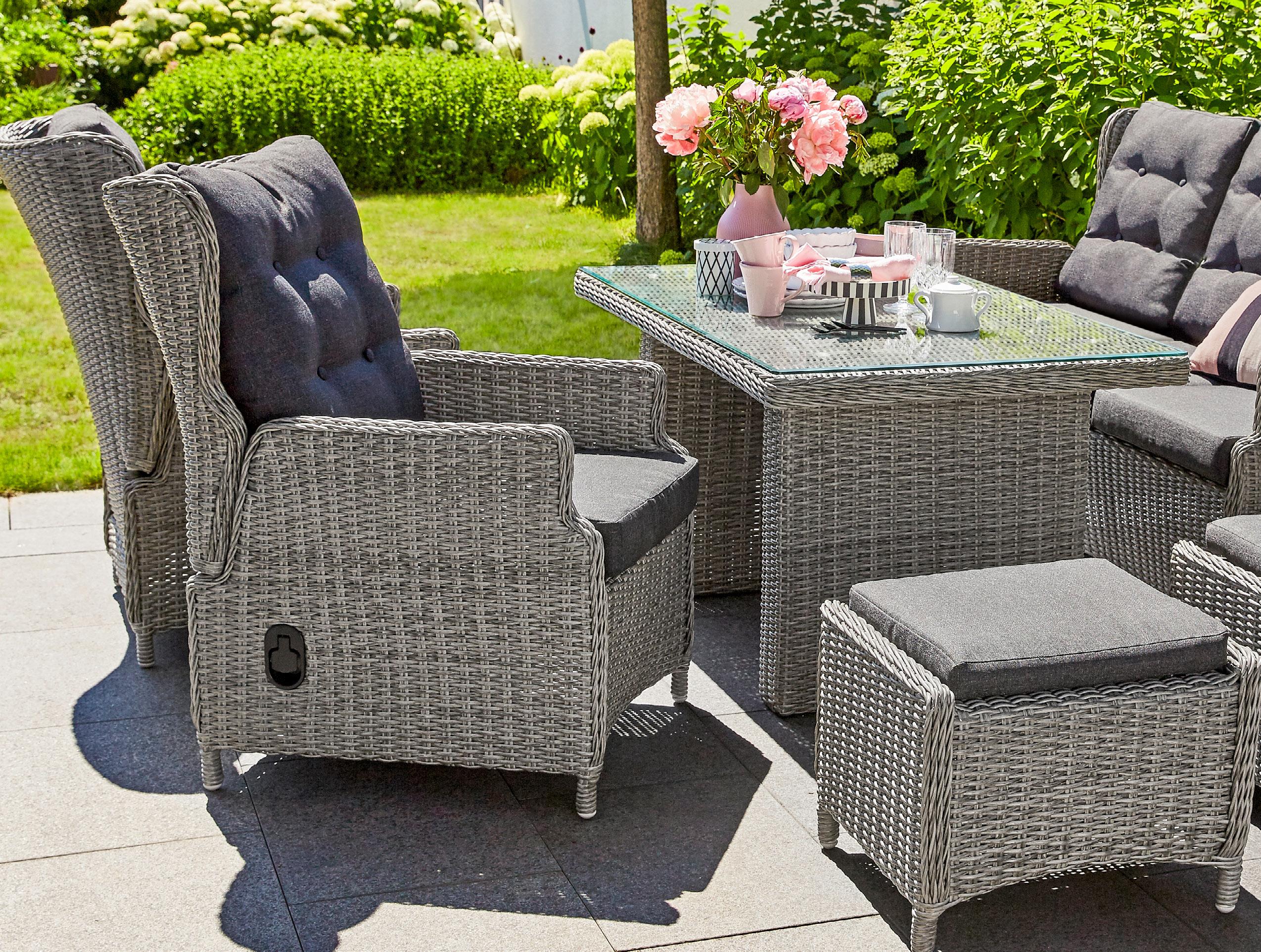 Z udobnimi sedežnimi garniturami in naslanjači – v kompletu ali posamezno uredite svojo poletno dnevno sobo.