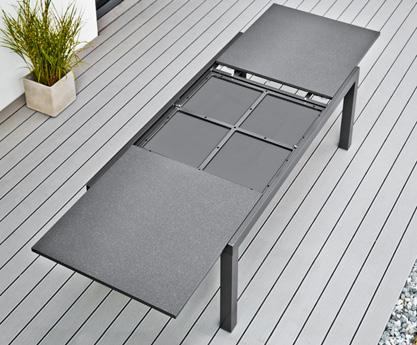 d 291 x š 223 x v 76 cm, ogrodje iz prašno barvanega aluminija, vklj. blazine za sedež in naslon, antracit