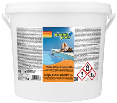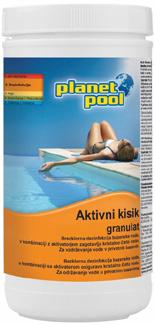 nova generacija sredstev za sunkovito kloriranje, hitrotopna kombinacija klora in aktivnega kisika v granulatu, močna oksidacija - hitro izhlapi