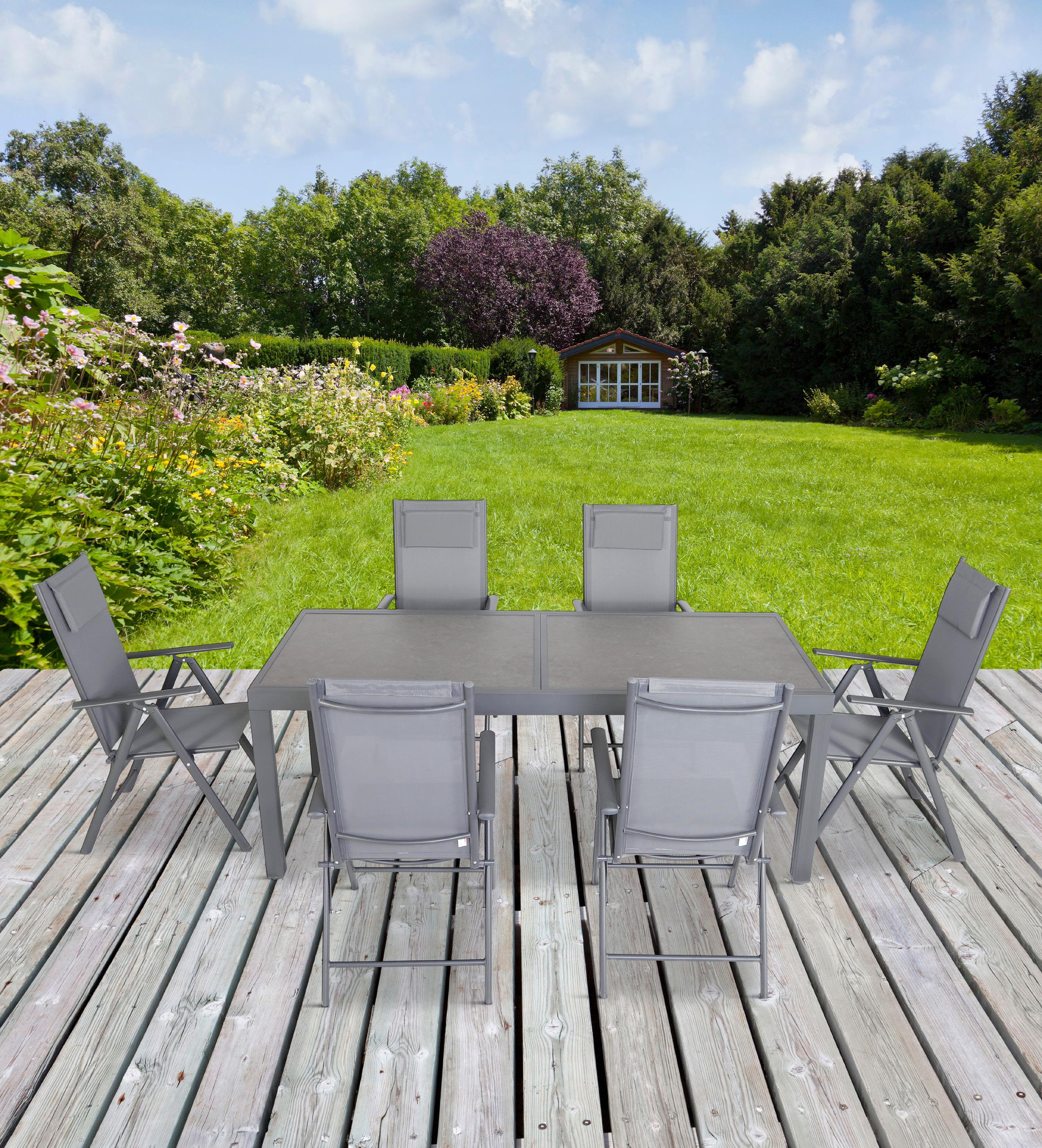 d 175 x š 78 x v 70 cm, prašno barvano aluminijasto ogrodje, vključno z udobnimi blazinami, različne možnosti postavitve, siva / natur
