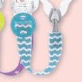 • priročna torbica, v katero lahko shranite dve dudi, enostavna pritrditev na previjalno torbo, pas ali voziček, na voljo v različnih barvah