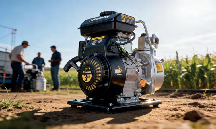 Otro pilar fundamental de la línea agríco la son las motobombas POWERPRO disponibles en versiones a gasolina y die sel, de alto caudal y alta presión. Diseñadas para riego, drenaje y trasvasije,