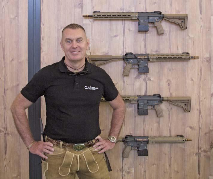 Nun präsentierte man mit Stolz das neue G97 im Kaliber .308 Winchester mit 13“/330 mm langem Lauf, das im Leerzustand ohne Zusatzausrüstung nur 3,5 kg auf die Waage bringt, was in dieser Kalibergruppe eine Hausnummer ist. OA stellte auch die Kompaktmodelle der Black Label-Baureihe in .223 Remington aus, für die jetzt in den Lauflängen 10,5“/267 mm, 12,5“/317 mm und 14,5“/368 mm ein positiver Feststellungsbescheid des Bundeskriminalamtes (BKA) und somit die Zulassung für das sportliche Schießen vorliegt - inklusive Mündungsfeuerdämpfer, Zweibein und Schubschaft! Auch das OA-Zubehörprogramm wird Schritt für Schritt weiter ausgebaut. Die hauseigene Optiklinie mit dem OA Sharp LPVO-Zielfernrohr 1-8x24i oder OA Sharp Sight-Leuchtpunktvisier mit zusätzlichem 3-fachen Vergrößerungsmodul OA Sharp Mag 3 haben wir ebenso wie die OA Sharp-Zielfernrohrmontage in der Vergangenheit ausführlich erprobt (siehe beispielsweise caliber 2/2023). Nun gibt es für die letztgenannte, perfekt für das OA Sharp LPVO-Zielfernrohr 1-8x24i geeignete Montage eine Schnittstelle für die zusätzliche Anbringung einer Sekundäroptik in Form eines Minileuchtpunktvisiers in Huckepack-oder seitlich angewinkelter Anordnung. Die neue OA Top Mount- oder Side Mount-Montage für Minileuchtpunktvisiere mit Shield RMS- oder Holosun EPS Carry-Fußabdruck kostet 89 Euro. Der Vorteil der Seitenmontage: durch leichtes Verkanten der Waffe kann bei gleichem Abstand zur Laufseele zwischen Primärund Sekundäroptik gewechselt werden.