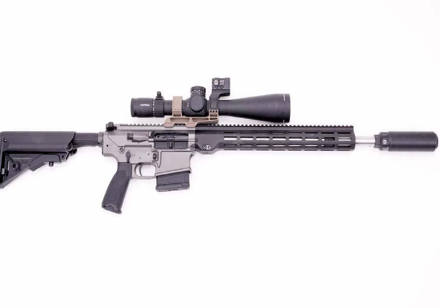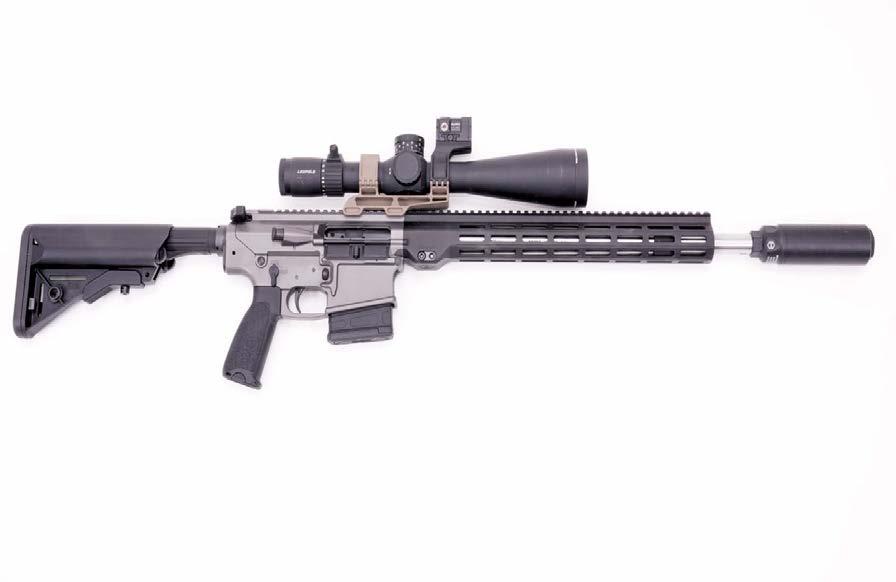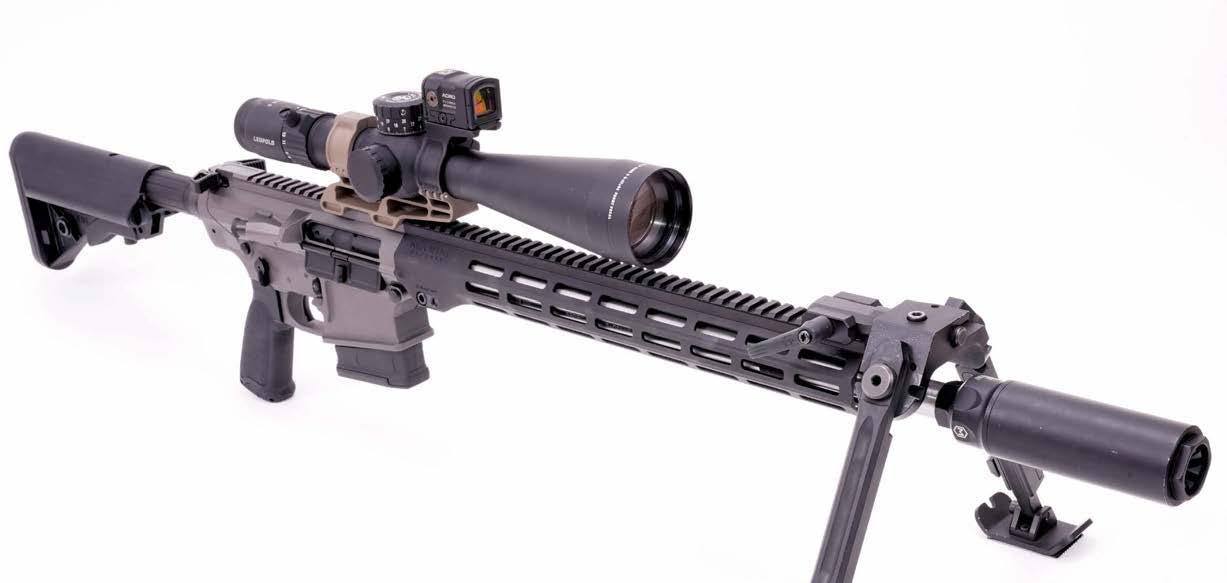 Minnesota-Matchmonster: Das Maxime Defense MD-11 in .308 Winchester, hier ausgerüstet mit Leupold Mark 5-Zielfernrohr und Aimpoint ACRO P-2 in Huckepackanordnung sowie hauseigenem „M-Kore“-Schalldämpfer.