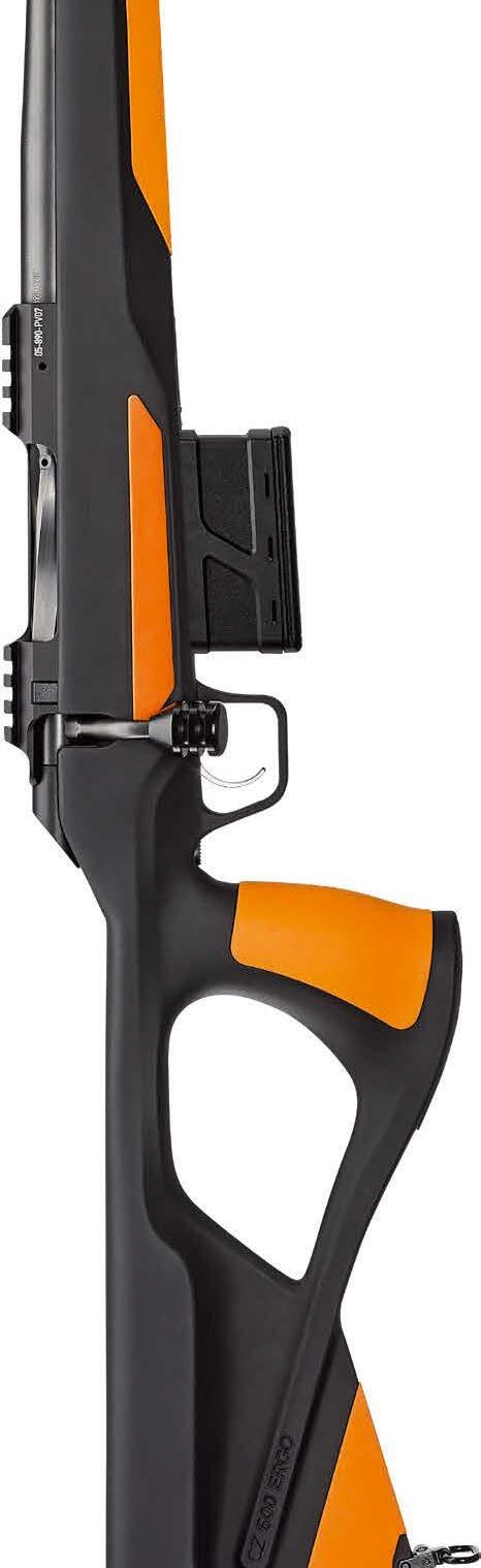 sem Kaliber im Programm, wie beispielsweise Winchester mit dem Modell 70, das in einem ausgezeichneten Preis-/ Leistungsverhältnis steht. Ruger bietet sein Modell Hawkeye African natürlich im vergleichbaren, hauseigenen Kaliber .416 Ruger an. Es gab auch die Blaser R93, Mauser M03 oder Sauer 202 in .416 Rem. Mag., wobei man heutzutage nur noch die R8 Safari Kilombero für diese Patrone entdeckt. Unsere Erprobungswaffe in Gestalt einer Winchester 70 aus eigenen Beständen wurde in Anlehnung an das originale Mauser Magnum-System bis 1964 mit langem Auszieher als „Controlled-Feed-System“ für eine kontrollierte Patronenzufuhr ge-