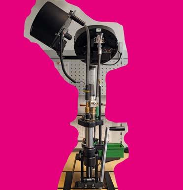 Die brandneue Turban-Progressivpresse Präzimat5, ladefertig mit Mark7-Hülsenzuführung und Mr. Bulletfeeder ProGeschosszuführung in 9 mm Luger.