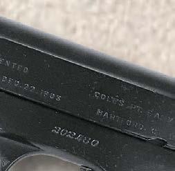 (=.380 ACP). Jedoch fasst die Sammlerwelt sie gern unter „Colt Hammerless Pocket Pistol“ zusammen, wie auch Colt schon. Die Titulierung stimmt freilich nicht: Diese „1903/1908 Colt Hammerless Pocket Model“ genannten Waffen hatten ja einen Hahn, der aber war vom Schlitten verdeckt, so dass man ihn nicht à la M 1911 von außen händisch aufziehen konnte. Der Grund für den so klangvollen wie falschen Beinamen: Colt baute damals auch eine Taschenpistole mit außenliegendem Hahn, mit „Hammerless “ wollte man davon das hier beschriebene