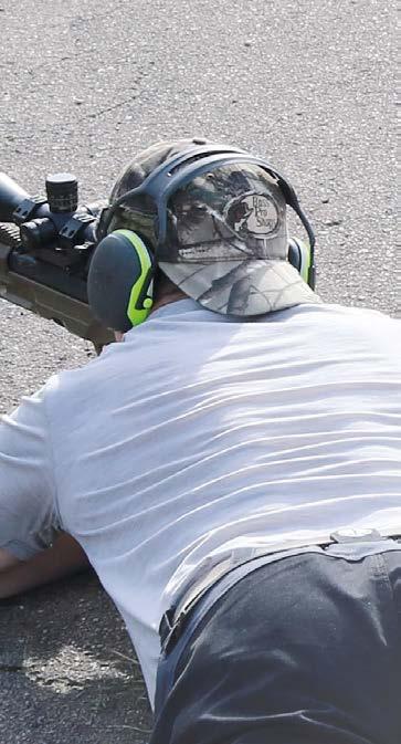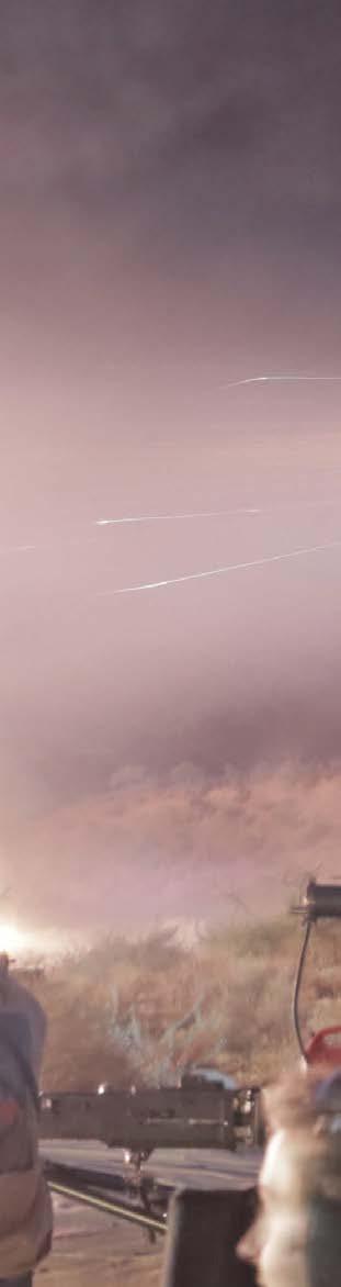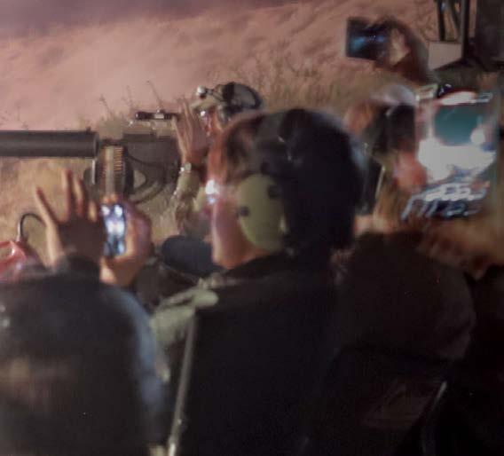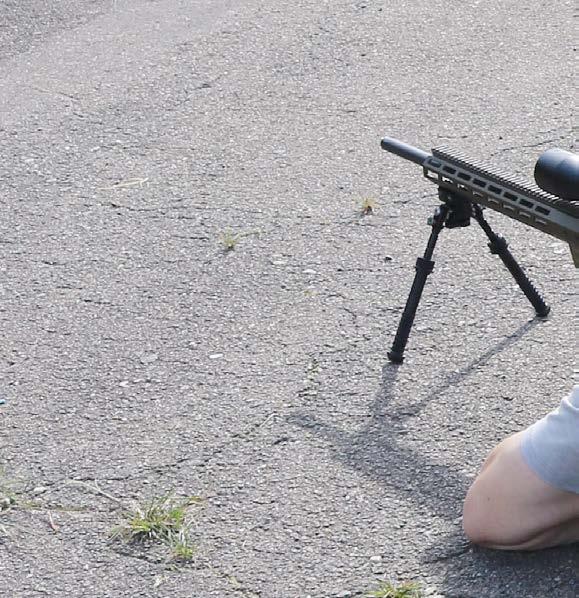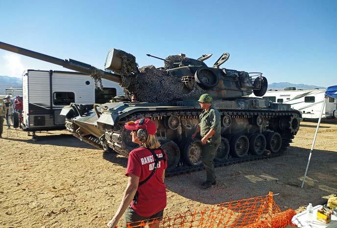 wagen die richtige Wahl darstellt: Eine Viertelstunde lang rumpelt das Auto über einen holprigen Wüstensandweg, ehe man das Big Sandy Test Center erreicht. Dort ndet an drei Tagen im Oktober 2024 der 20. Geburtstag des Big Sandy Shoot statt. Ein Jubiläums-Schießevent der Superlative – mit einer Feuerlinie, die sage und schreibe 500 Meter breit ist. Teilnehmer und Organisatoren schaffen alles heran, was schießt. Vom