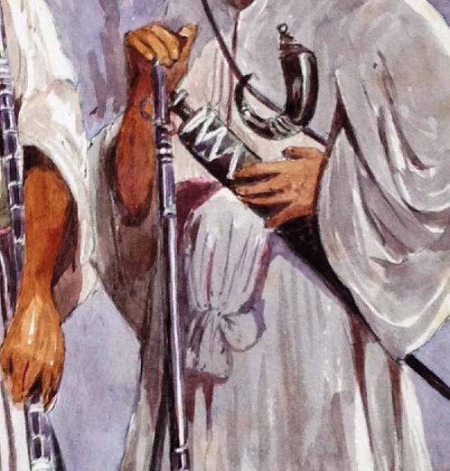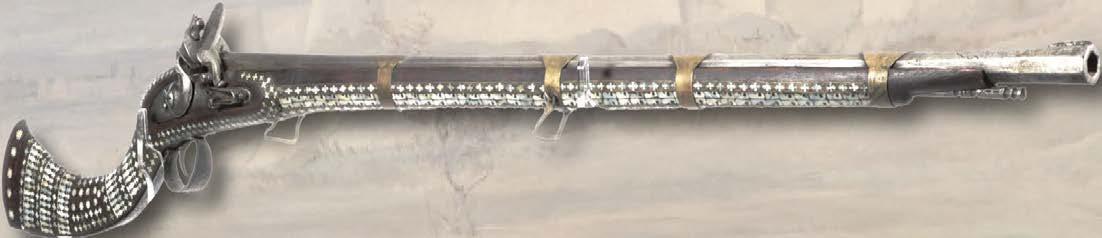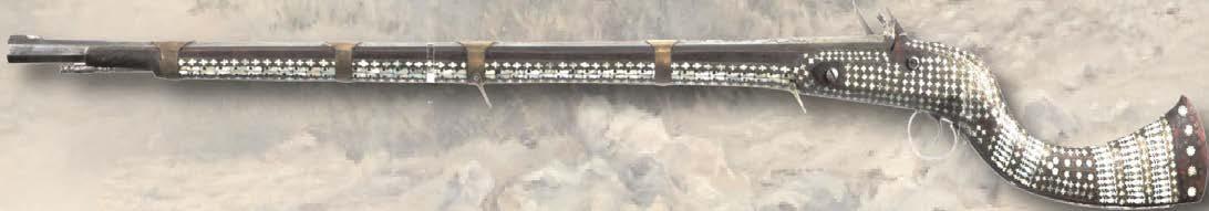noch mit dem Re exbogen kämpften. Den auf kürzere Distanz gefährlichen Bogenschützen auf weitere Distanz zu halten, war die Herausforderung. Wer die Idee hatte, den Gewehrlauf zu verlängern, um damit die Treffsicherheit und Reichweite zu erhöhen, ist nicht überliefert, aber die Maßnahme setzte sich schnell durch. Auch der Schaft wurde so gestaltet, dass sich die Waffe angenehm vom Pferd oder Kamel abfeuern ließ. Das Jezail war geboren und damit die ideale Konstruktion für die Weiten dieser kargen Gebirgsregion.