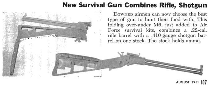in Repetiergewehr mit einem Meter Länge war in einem engen Flugzeug nur schwer zu verstauen und beim Absprung mit dem Fallschirm äußerst hinderlich. Kurzwaffen alleine reichten jedoch für die Jagd und eine mögliche Verteidigung gegen feindliche Soldaten nicht aus. Letztendlich durften auch der Fertigungsaufwand und der Preis nicht vernachlässigt werden – immerhin blieben die Waffen die meiste Zeit unbenutzt. Während des Krieges sammelte sich bei der amerikanischen Luftwaffe ein bunter Bestand an militärischen und sonstigen Waffen an Bord ihrer Flugzeuge an. Je nach Organisationstalent und Einsatzgebiet der Besatzungen – immerhin besser als nichts. Erst nach dem überstandenen Krieg nahm man sich unter Berücksichtigung der gemachten Erfahrungen diesem Problem of ziell an und entschied sich zur Entwicklung einer spezielle Waffe. Diese sollte natürlich