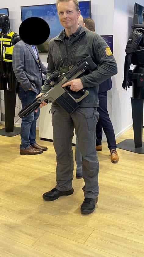 Rheinmetall präsentiert mit dem Realmodell nun eine deaktivierte Variante des SSW40 als letzte Entwicklungsstufe der Hydra 40 mm. Die Evolution der Waffe umfasst die Verlagerung des Durchladehebels in die Schulterstütze, die Verlagerung des Magazinhaltehebels oberhalb
