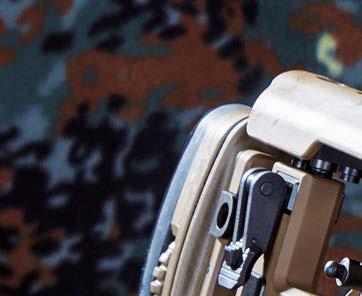 Schlagbolzen eine Abfeuerung aus. Sie ist dadurch immer sicher bei gleicher Bedienung. Die Variante für das Trainingssystem UTM ist in der Entwicklung, denn bestimmte Bundesländer nutzen diese Randfeuermunition für das Farbmarkiertraining.