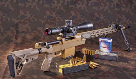 C. G. Haenel das Präzisionsgewehr RS8 (Ri e System) auf den Markt gebracht. Die RS8 gibt es aktuell in den drei Ausführungen Basic, Compact und Subsonic. Die RS8 Basic ist in den Kalibern 6,5 Creedmoor und .308 Winchester, jeweils mit 600 Millimeter Lau änge und einem 1:8“- beziehungsweise 1:12“-Drall erhältlich. Die Compact wird mit einer Lau änge von 510 mm und 1:12“-Drall nur im Kaliber .308 Win. angeboten. Die dritte Variante, die RS8 Subsonic, ist eine integral schallge-