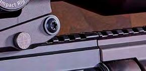 Der Handschutz aus Leichtmetall erlaubt dem Rohr freies Schwingen und könnte konzeptionell auch von einem modernen AR-15 stammen. Aber nicht in seinem Durchmesser: Weil er innen nur ausreichend Platz für den gehämmerten Lauf mit BobOx-Beschichtung und Mediumkontur (18,5 mm Durchmesser) bieten muss, ohne Rücksicht auf die GasSysteme eines Halbautomaten, misst er lediglich 33 mm in der Breite und 42 mm in der Höhe. Ansonsten unterscheidet er sich nicht groß von einem typischen ARHandschutz: oktagonal in seinem Querschnitt, bietet er auf seiner Oberseite (12 Uhr) eine durchgehende PicatinnyMontageschiene, passend zur Pica Rail auf dem Systemgehäuse. Davon abgesehen bietet er ringsum Montageschlitze nach dem von Magpul entwickelten MLok-Standard. In der Anleitung weist CZ darauf hin, dass eventuell nicht alles an M-Lok-Anbauteilen vom Fleck her passen wird: Der Handschutz ist sehr schmal, der Abstand im Inneren zum Lauf entsprechend knapp bemessen, im Zweifelsfall soll das Kürzen der Montageschrauben helfen.