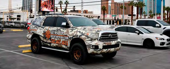 Eher beiläufig stoße ich auf dieses Unternehmen. Als das Taxi bei der Fahrt vom Hotel „Circus Circus“ zur SHOT Show nicht nach vorn auf den neuen Strip abbiegt, sondern nach hinten fährt, fallen mir Hubschrauber, Panzer und Humvees auf der anderen Straßenseite auf. Zwar bin ich schon vorher in Sin City über An-