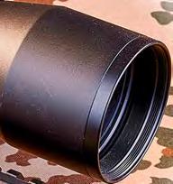 665 Millimeter oder 26,2 Zoll. Die Rotation des Geschosses übernehmen sechs Felder und ein 1:7“-Drall. Mittels M24-Außengewinde wird das Rohr in die Systemhülse geschraubt. Das andere Ende des Laufes weist ein zölliges 5/8x24 UNEF-Gewinde auf. Darauf war bei der Testwaffe eine MPA-Mündungsbremse des Typs DN3 mit vier Kammern für 6,5-mmKaliber geschraubt und gekontert. Die Durchgangsbohrung misst 7,4 Millimeter. Die Prallfl ächenpaare leiten die Verbrennungsgase seitlich ab und reduzieren dadurch den Rückstoßimpuls, welcher angesichts des Waffengewichts und der geringen Geschossmasse von Haus aus schon gering ausfällt.