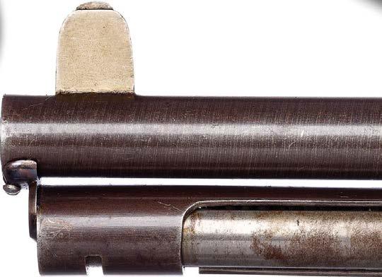 nach hatten hunderte Er nder diesen Waffentyp technisch weitgehend ausgereizt. Allen Mühen zum Trotz blieb es meist bei „six shot quick“. Zeit für etwas Neues, etwa eine höhere Kapazität oder eine andere Art des Munitionsreservoirs als in einem klobigen Trommelmagazin. Bereits in den 1850er Jahren meldeten US-Fabrikanten, die Alternative zur Trommel hieße Röhre. Allem voran betraf das die Repetierer der Waffenfamilie, deren Merkmal ein Röhrenmagazin unter dem Lauf war und die unter wechselnden Bezeichnungen als „Smith & Wesson“ und „Volcanic“ ab Mitte der 1850er