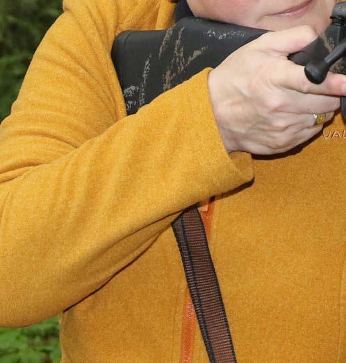 schwarze Lauf der Testwaffe. Der Monte Carlo Schaft ist gefällig und schmeichelt sowohl dem Tester als auch der Testerin. Die Schaftkappe ist ziemlich weich und bleibt in der Kleidung hängen. Für den Ansitz kein Problem, für schnelle Anschläge und Schüsse auf bewegte Ziele etwas lästig. Der Abzug lässt sich gut vom Pistolengriff aus erreichen. Die Weatherby Vanguard setzt auf einen einstellbaren Two Stage-Match-Abzug. Der Vorweg ist sehr deutlich fühlbar. Nach dem Überwinden des Abzugsgewichtes von zirka 1130 Gramm bricht der Abzug jedoch ganz sauber und klar. Rechts neben dem Verschluss sitzt das Bedienelement für die Dreistellungs-Sicherung. Die Position der Sicherung ist ergonomisch ausgeklügelt, lässt sie sich doch wunderbar mit dem Daumen bedienen. Das Verstellen der Sicherung funktioniert leider auch unter Anstrengung nicht lautlos, sondern bestenfalls gedämpft. Die drei möglichen Stellungen der Sicherung sind mit „ S “ (Safe), einem senkrechten Strich, beziehungsweise „ F “ (Fire) gekennzeichnet. Die Sicherung wirkt auf den Abzug und den Verschluss, in der Mittelstellung nur auf den Abzug, aber hier kann der Zylinderverschluss geöffnet werden.