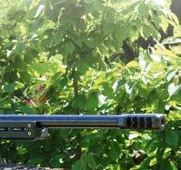 Dass die Waffe gespannt ist, zeigt ein silbernes Metallplättchen, welches unterhalb der Schlösschenverkleidung zum Vorschein kommt. Die Kugel des Kammerstängels ist eher klein, insgesamt aber passend zum Gesamtbild der Waffe. Die Kugel ist am unteren Rand gerändelt. Der 90-Grad- Öffnungswinkel bringt den Kammerstängel bei geöffnetem Verschluss recht nah an Zielfernrohr und Montage, funktioniert aber. Der Kammerstängel ist schwarz Cerakotebeschichtet. Soll der Zweiwarzen-Verschluss aus dem System entfernt werden, VISIER.